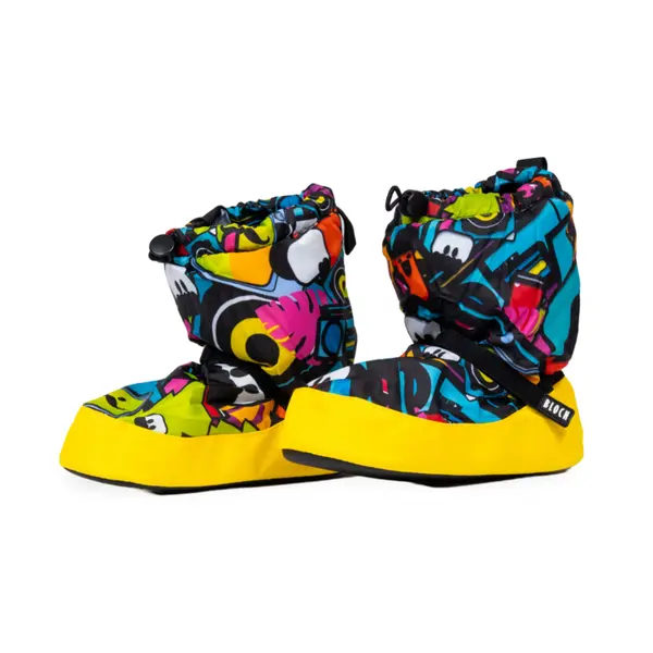Limitovaná edícia booties značky Bloch, papučiek na zahriate, má tentokrát pestrý dizajn. 100% polyesterová výplň zahreje a hlavne udrží v teple nohy malých tanečníc a tanečníkov rôznych štýlov. Je ideálna na skúšky tanca, počas prestávok medzi tanečnými hodinami alebo počas súťaže, kedy deti čakajú na svoj výstup v šatniach, na chodbách.