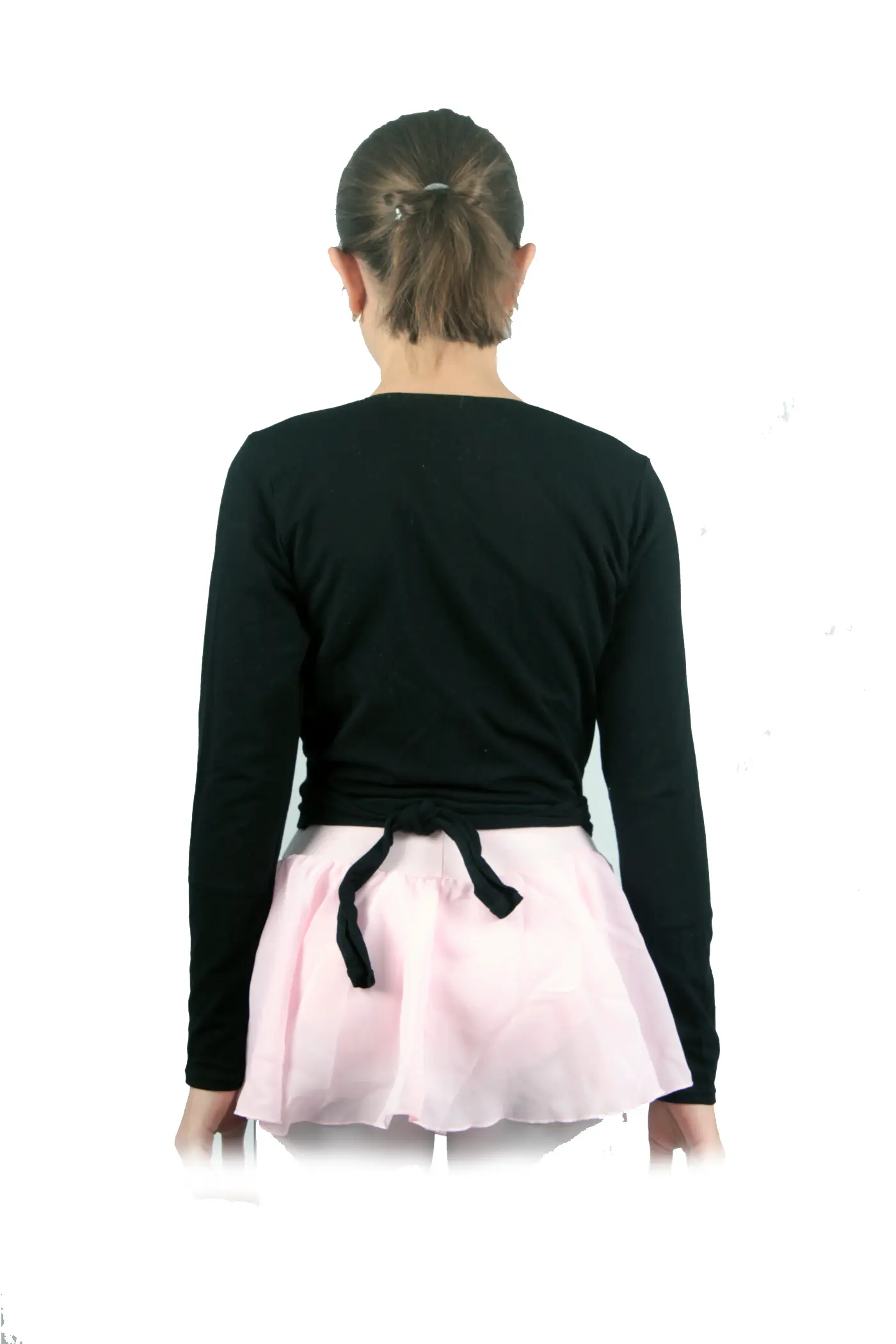 Top na zahriatie pre dievčatá je nevyhnutnou súčasťou šatníka malých tanečníc. Tento klasický strih s prekrížením sa nielenže krásne prispôsobí telu, ale zároveň ponúka možnosť individuálneho nastavenia potrebnej šírky. Niet divu, že je obľúbený u malých tanečníc a baletiek nielen počas úvodných cvičení ale i v chladnejších tanečných sálach. Kvalitný materiál 90% bavlny a 10% elastánu je príjemný na telo, teplý a zároveň dostatočne pružný na to, aby neobmedzoval žiadny z pohybov. Perie sa v studenej vode s jemným prostriedkom bez použitia chlóru a necháva sa voľne schnúť.