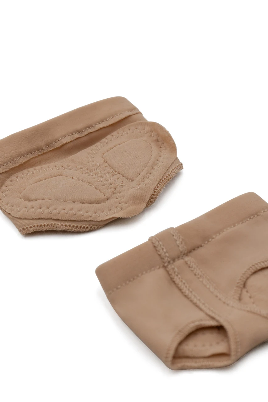 Ochráňte si chodidlá pri točkách. Na spodnej časti sú dva samostatné vankúšiky, pre "bruško" veľkého palca na nohe a pre "brušká" na ostatných palcoch nohy. Podobným spôsobom sú riešené otvory pre nasunutie. Jeden je určený pre veľký palec na nohe. Ostatné prsty majú samostaný otvor. Do tanečnej ťapky bol vložený silikónový gél. Materiál je veľmi príjemný, elastický, hladký. Materiál, ktorý obopína prsty je nylon lycra spandex.
