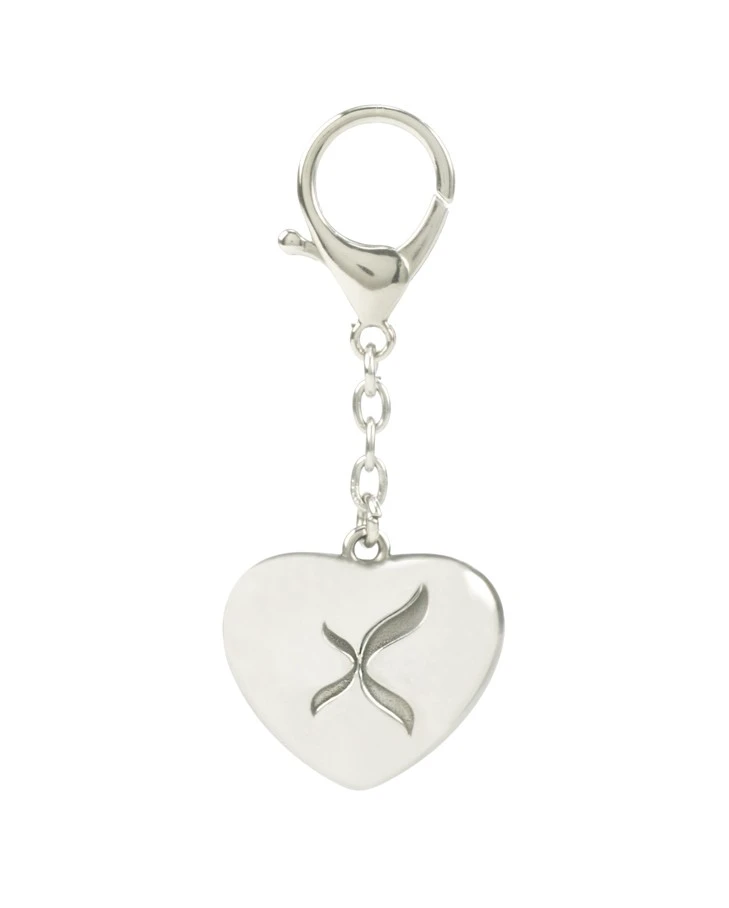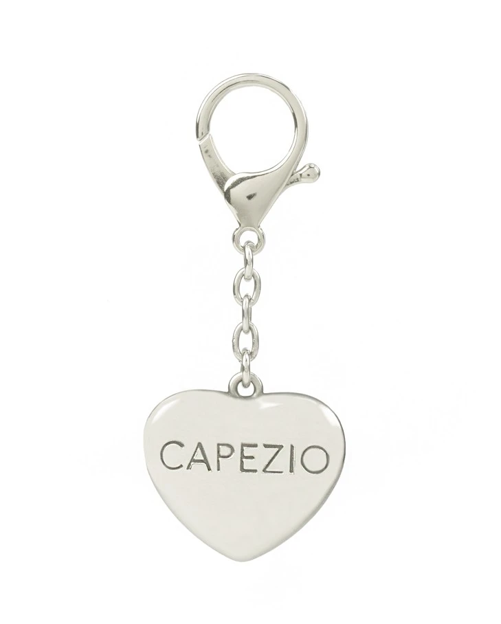 Prívesok v tvare srdiečka z nehrdzavejúcej ocele. Na jednej časti je vygravírované logo, na druhej nápis "CAPEZIO". A1017U