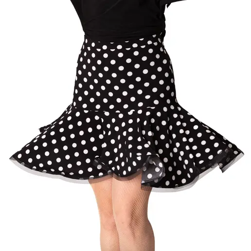 Bodkovaná suknička spestrí šatník všetkých tanečníc. Rovný strih po bokoch je zakončený fodričkou s volánikom, ktorý sa pri pohybe pekne rozvlní. Lem môže byť čierny alebo farebný. Nohavičky sú súčasťou balenia. Materiál 100% polyester je padavý.