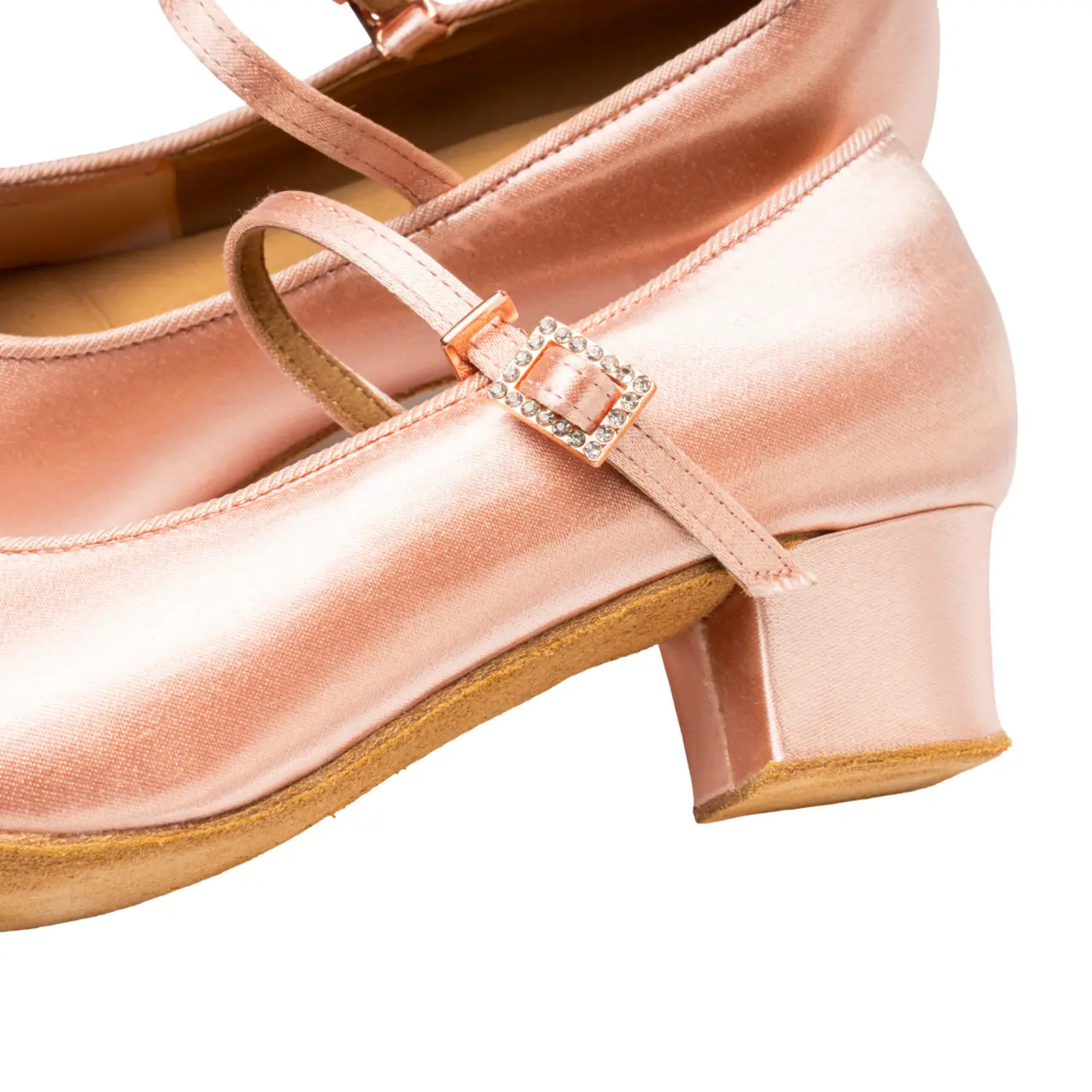Zvršok je vyrobený zo saténu v jemnej svetlej farbe s nádychom do ružovej, ktorý pôsobí elegantne, ale zároveň veľmi decentne a detsky. Farba je univerzálna a ľahko kombinovateľná s tanečnými šatami.