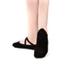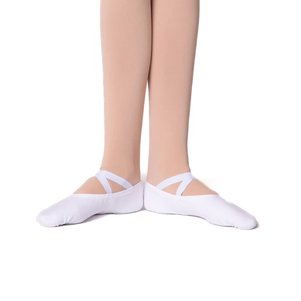 Veľmi príjemný materiál majú tieto elastické cvičky s delenou koženou podrážkou. Z vnútornej strany obsahujú cvičky bavlnu a elastán. Cez priehlavok vedú krížom našité dve elastické gumičky. I lem cvičiek je elastický. Sú vhodné na všetky typy chodidla, pekne sa prispôsobia. U širších chodidiel odporúčame vziať o číslo väčšiu veľkosť, než je bežná, konfekčná.