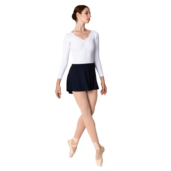 Jemný elastický dres s dlhým rukávom a s možnosťou stiahnutia - jemného nazbierania na prsiach. Chrbát má jemný oblúkovitý strih. Perie sa ručne v studenej vode s jemným pracím prostriedkom a necháva sa voľne schnúť. Materiál - kombinácia bavlny a polyamidu.