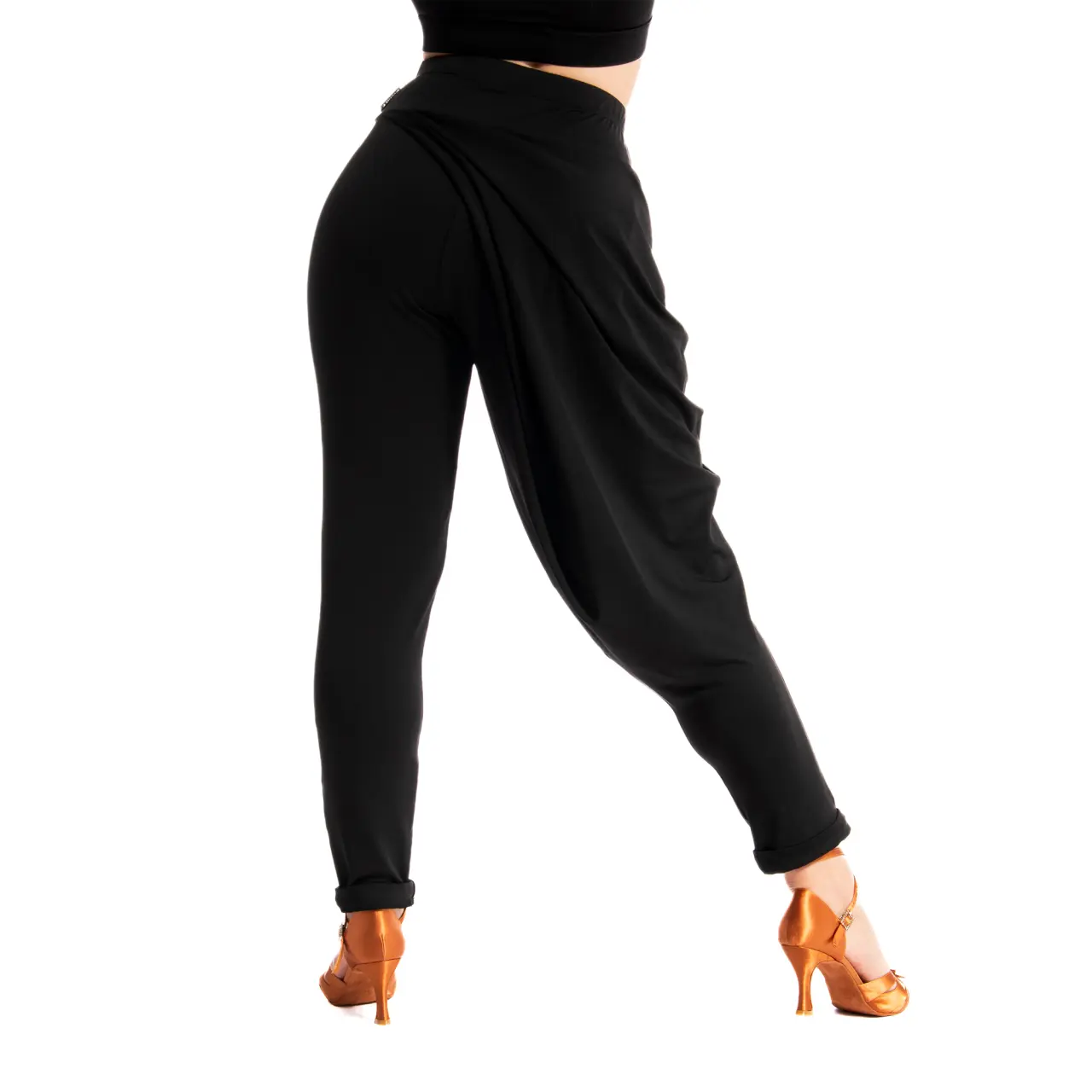 Tréningové nohavice Lori sú navrhnuté pre vaše potreby. Asymetrický strih nie len že priláka pozornosť, zvýrazní vašu postavu, ale zároveň vďaka použitému strečovému materiálu ponúka flexibilitu, ktorá je nevyhnutná pri tanci. Sú vhodné na tréningy salsy, bachaty, kizomby, latinskoamerických tancov.