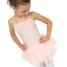 Super sladké a zároveň jemné a čísté sú línie týchto šatičiek s tutu sukničkou. Dresík je na tenké špagetové ramienka. V prednej časti má malé lesklé kamienky. Sieťovaná tkanina na chrbátiku dotvára príjemný vzhľad. Suknička je trojvrstvová.